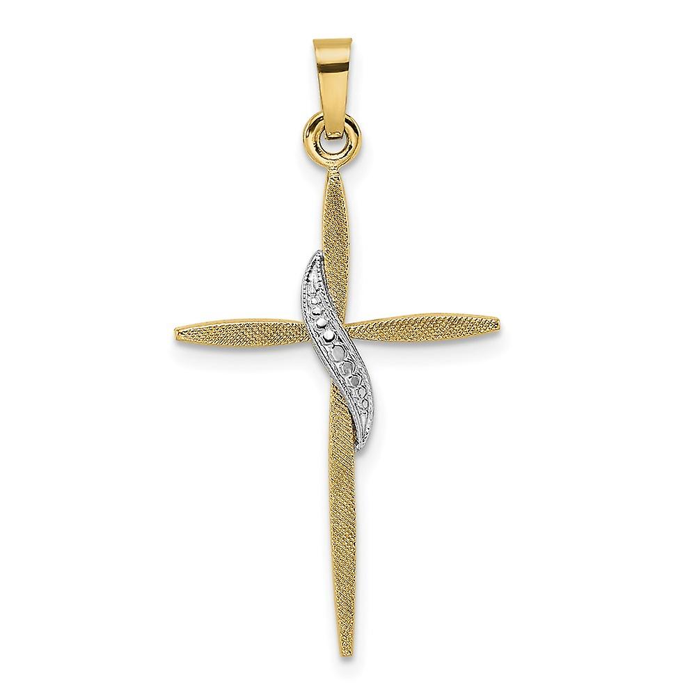14k Two tone Gold Solid Methodist Religious Faith Cross Pendant Necklace 35x18.66mm Wide 2.6mm Thick-Pendant for Women