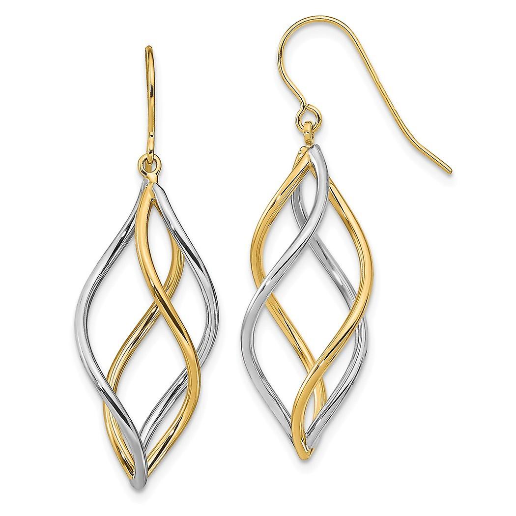 14k Two-tone Gold Polished Dangle Earrings - Measures 38.8x14mm Wide - 2.3 Grams In 14k Yellow Gold - - Width of Item: 14 mm - Length of Item: 38.8 mm - Earring Closure: French Wire - Earring Type: Drop & Dangle - Finish: Polished - Feature: Hollow - Engravable: Not Recommended -