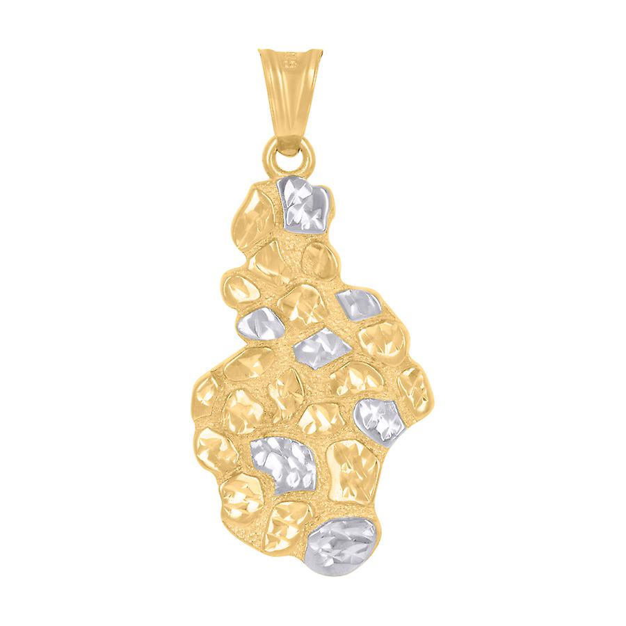 14k Two tone Gold Mens Nugget Fashion Charm Pendant 31.9x14.6mm Wide Necklace for Men - 2.5 Grams