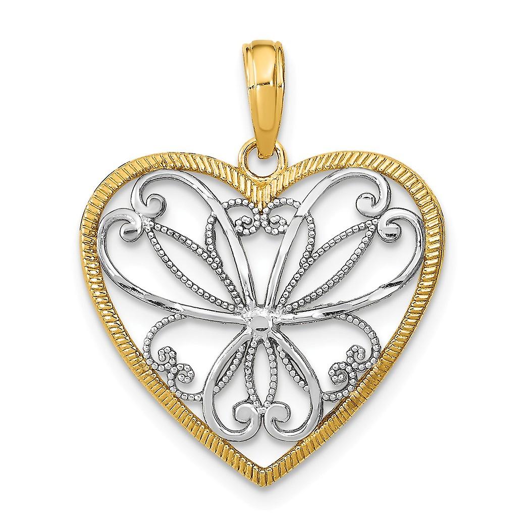 14k Two tone Gold Love Heart Pendant Necklace With White Filigree Center-Two color 24x20.8mm Wide-Pendant for Women