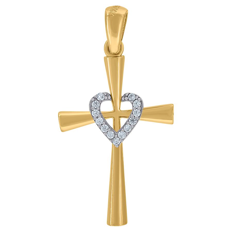14k Two tone Gold Womens Cubic Zirconia Love Heart Cross Religious Charm Pendant Necklace 31.2x16mm Wid-Pendant for Wome