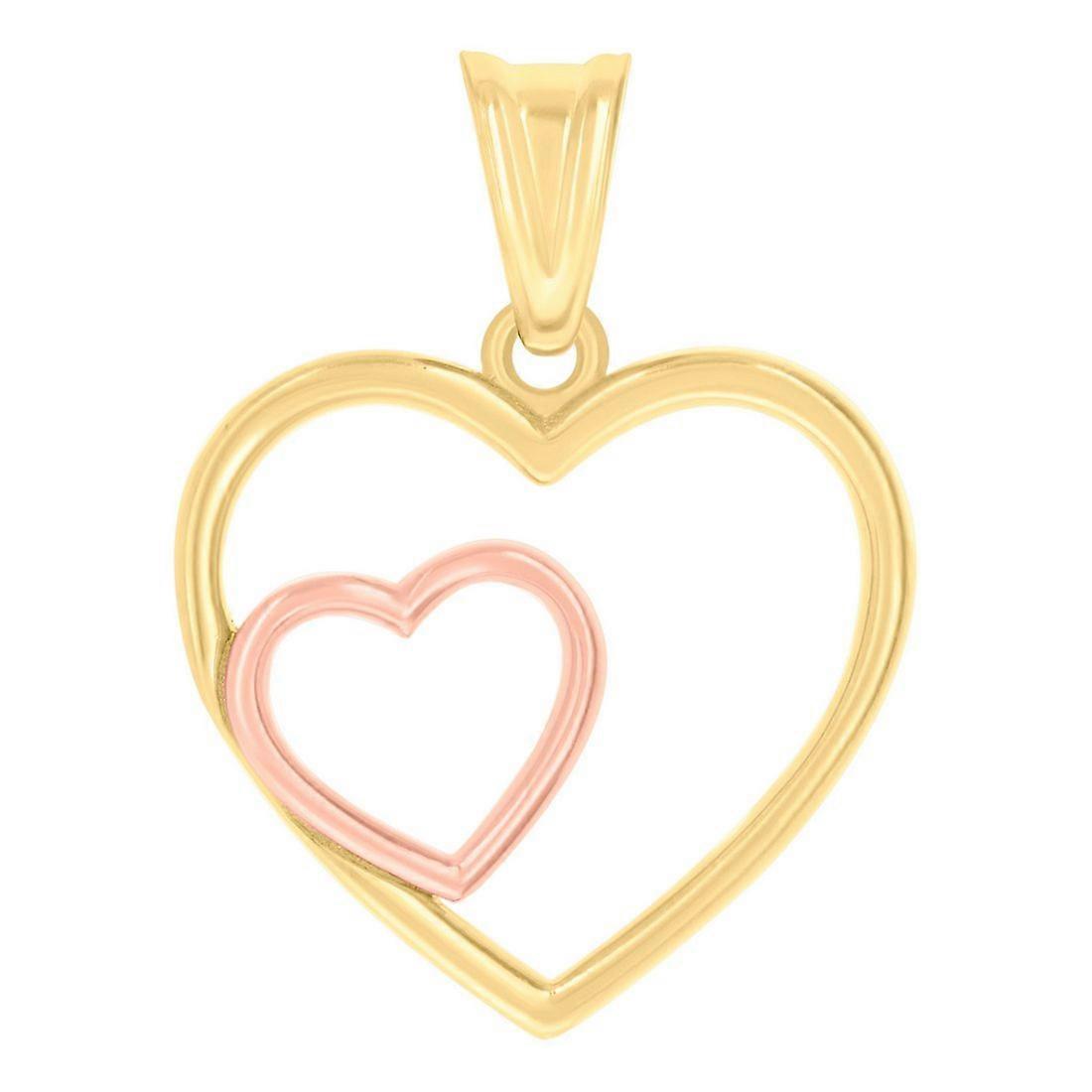 14k Two tone Gold Womens Double Love Heart Charm Pendant Necklace 23.2x17.1mm Wide-Pendant for Women