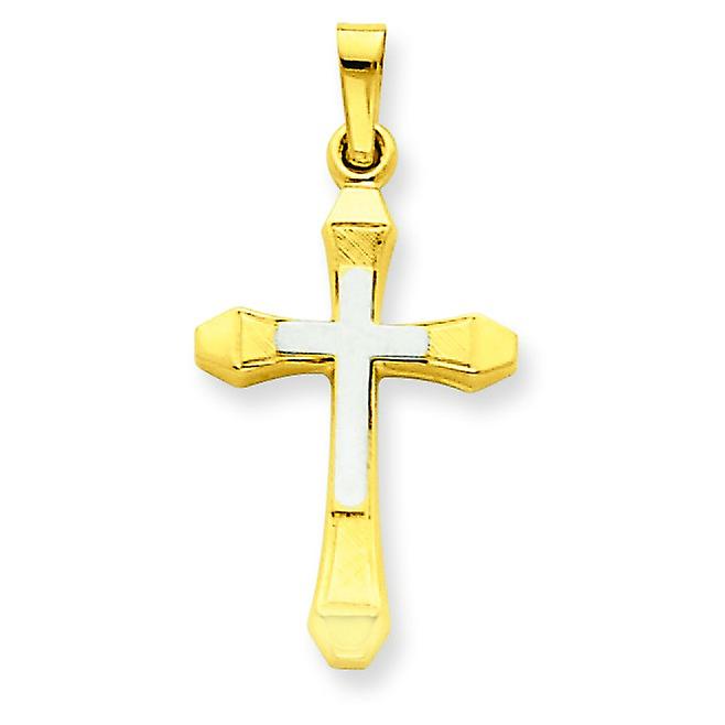 14k Two Tone Satin Polished Gold Hollow Religious Faith Cross Pendant Necklace 20x13mm-Pendant for Women
