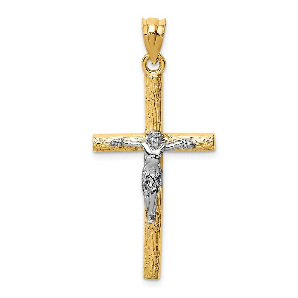 14k Two Tone Solid Polished Gold Crucifix Pendant Necklace 31.9x42.3mm-Pendant for Women - 1.9 Grams