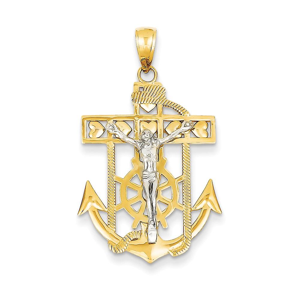 14k Two Tone Solid Polished Gold Mariners Crucifix Pendant Necklace 28x20mm-Pendant for Women
