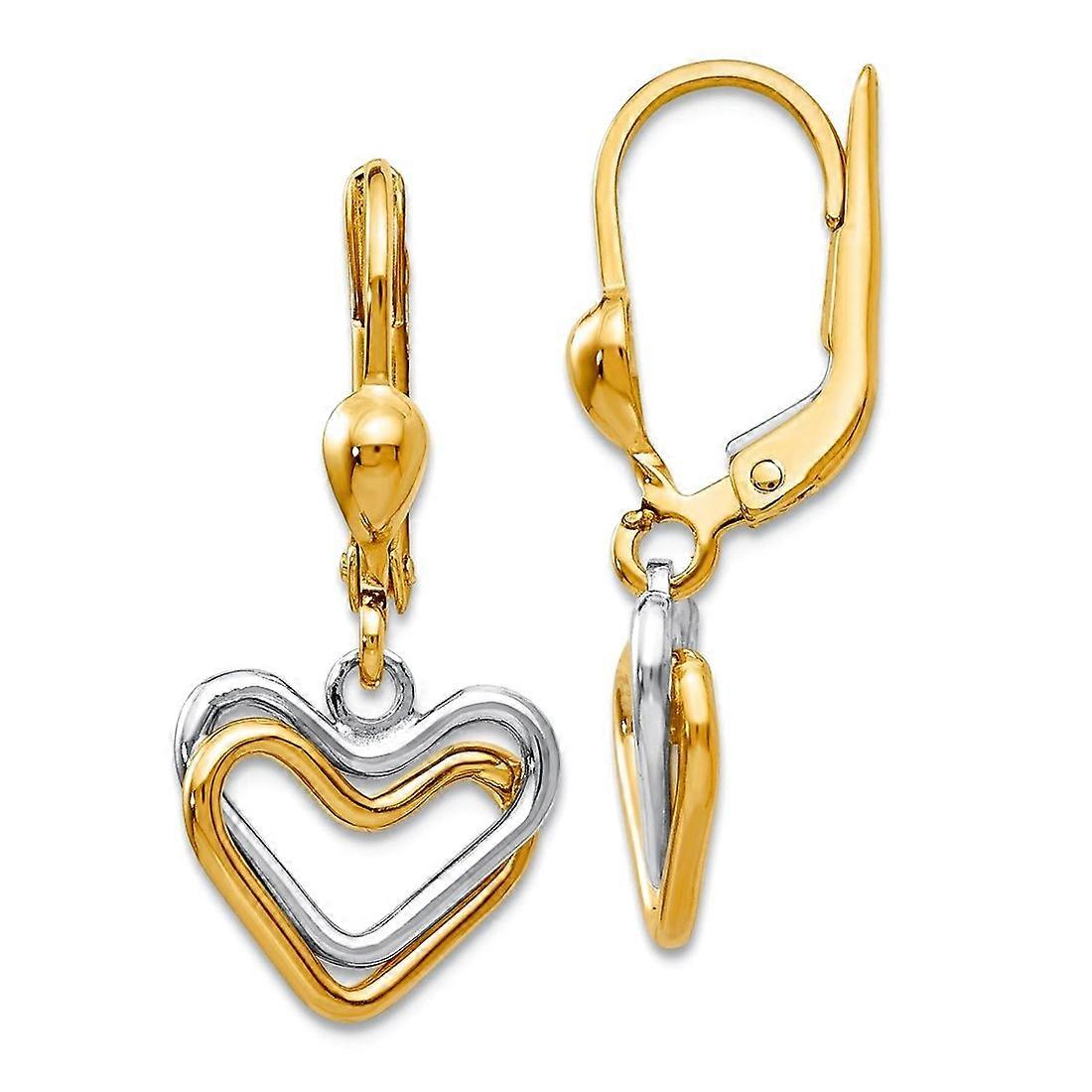 14k Two Tone Polished Gold Love Heart Leverback Long Drop Dangle Earrings 29x12mm-Dangle Earring for Women