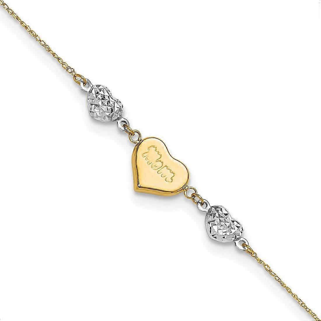14k Two Tone Polished Spring-Ring Gold Ropa Sparkle Cut Beads Puff Heart Love With 1inch Ext Anklet-Anklet for Women - L
