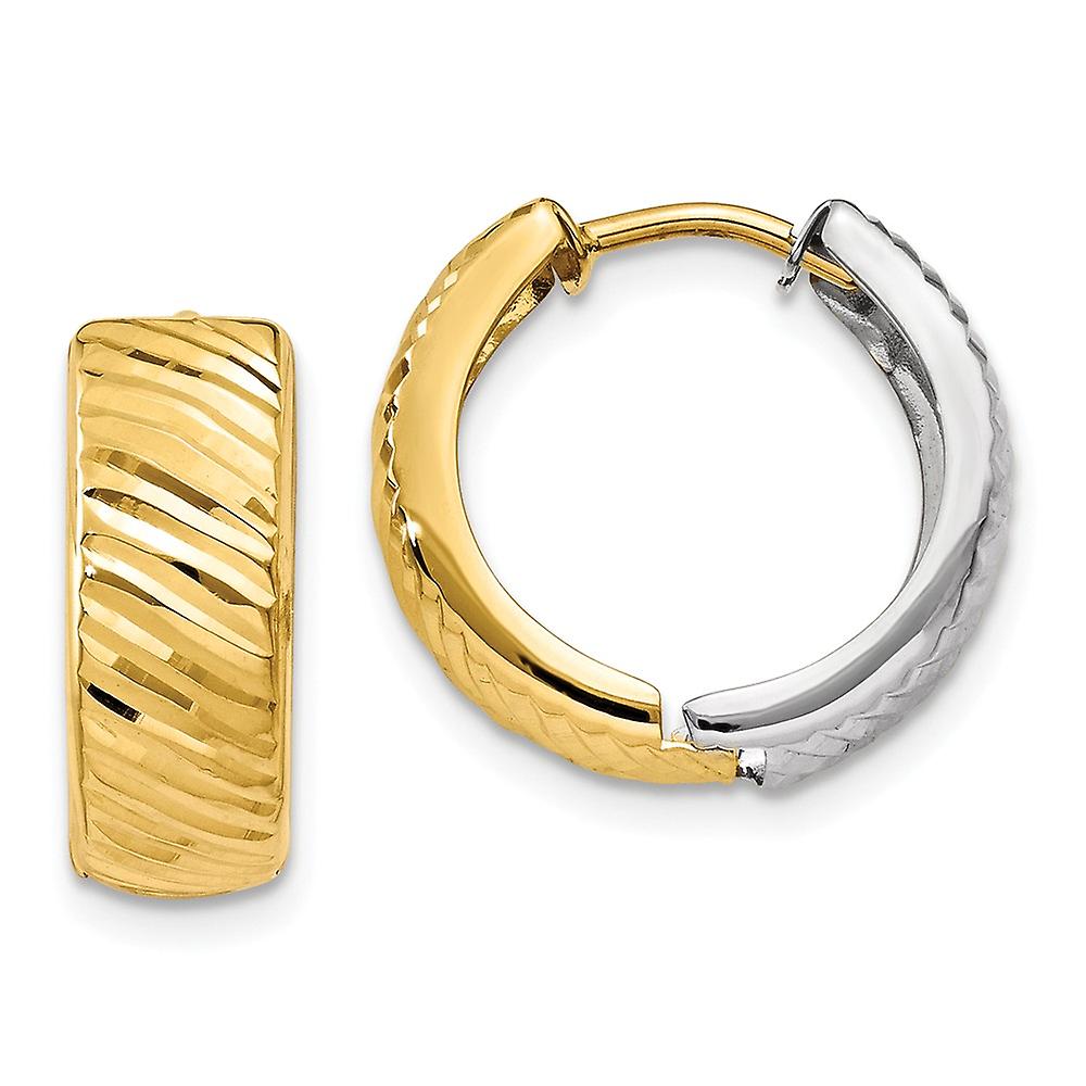 14k Two Tone Polished Hinged hoop Gold Textured-Hoop Earrings 14x14mm Wide 5mm Thick-Hoop Earring for Women