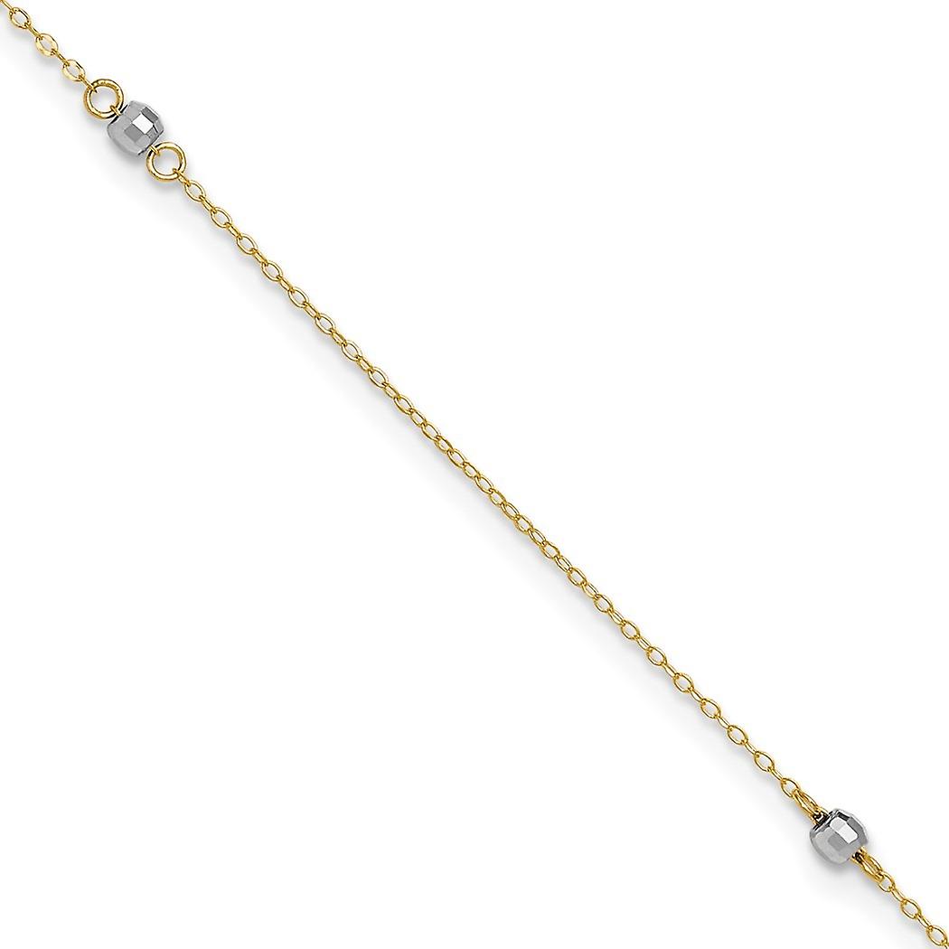 14k Two-Tone Gold Mirror Bead Anklet - in 14k Yellow Gold and White Gold - Product Attributes: - 1in extender - Adjustable - Polished - Spring Ring - - Length Options: 10 9