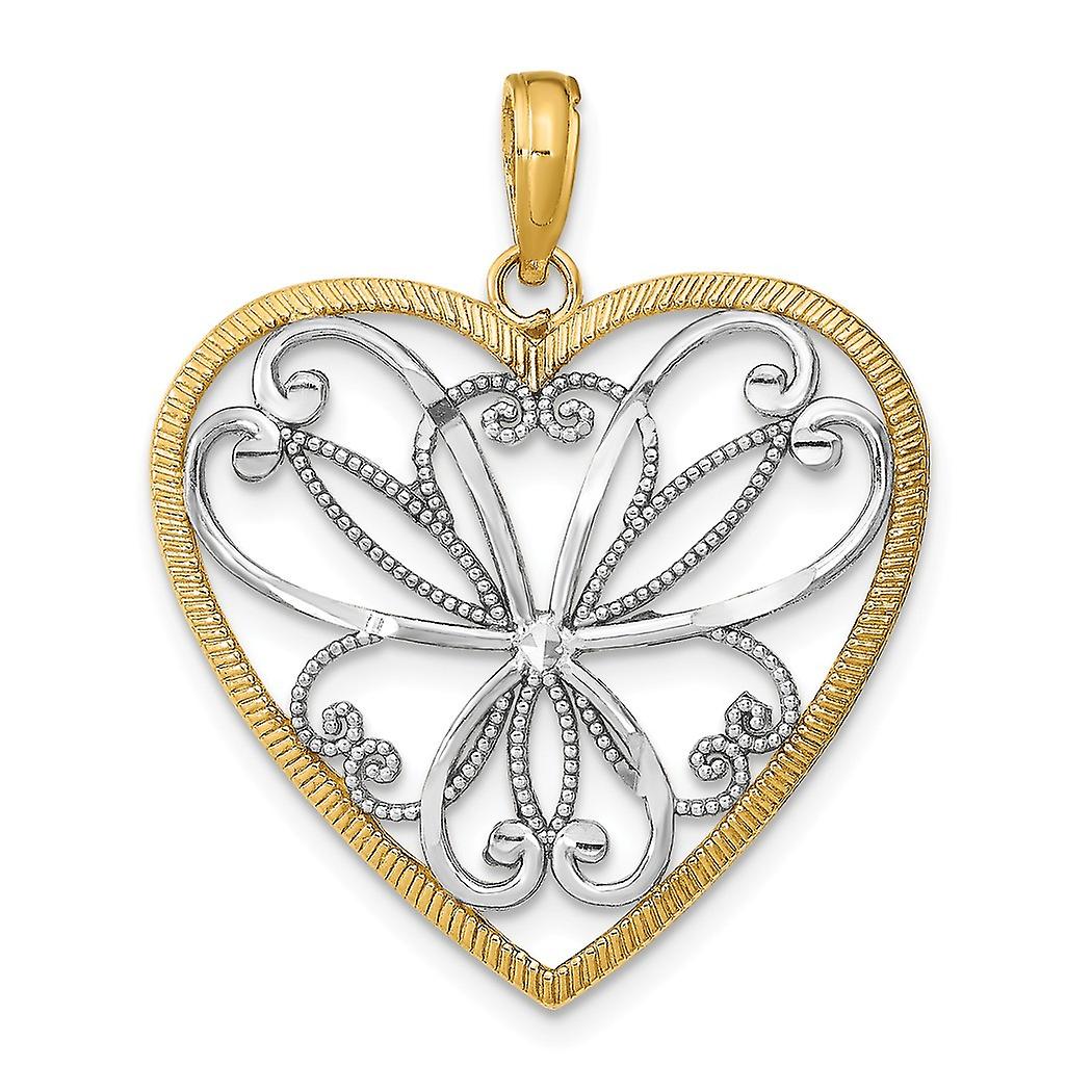 14k Two tone Gold Love Heart Pendant Necklace With White Filigree Center-Two color 31.5x25.5mm Wide-Pendant for Women