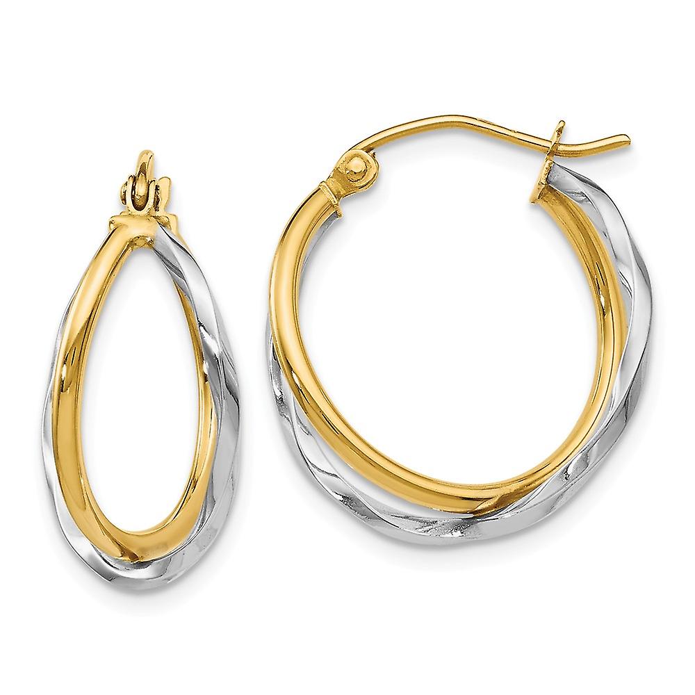 14k Two Tone Textured Hinged post Gold Polished-Hinged Earrings 22x17mm Wide 7mm Thick Stud Earring for Women