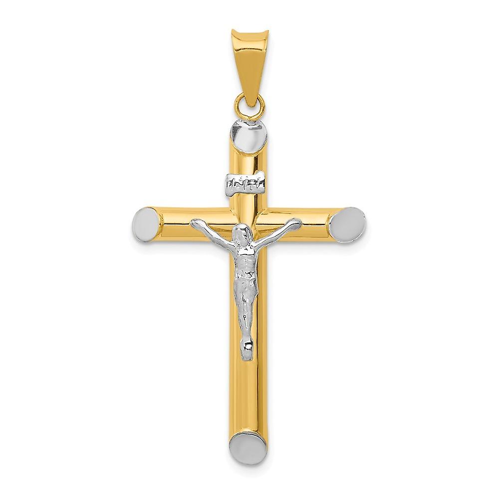 14k Two Tone Hollow Polished Gold and Rhodium INRI Crucifix Pendant Necklace 46.3x24.1mm-Pendant for Women