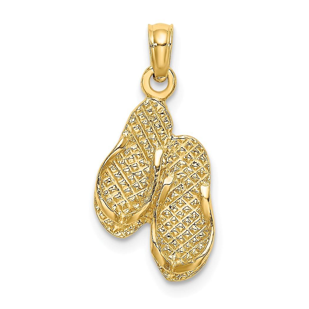 14k Textured Polished Gold 3 d Destin Florida Double Flip Flop Pendant Necklace 21.7x10.2mm Wide 2.8mm Thick-Pendant for