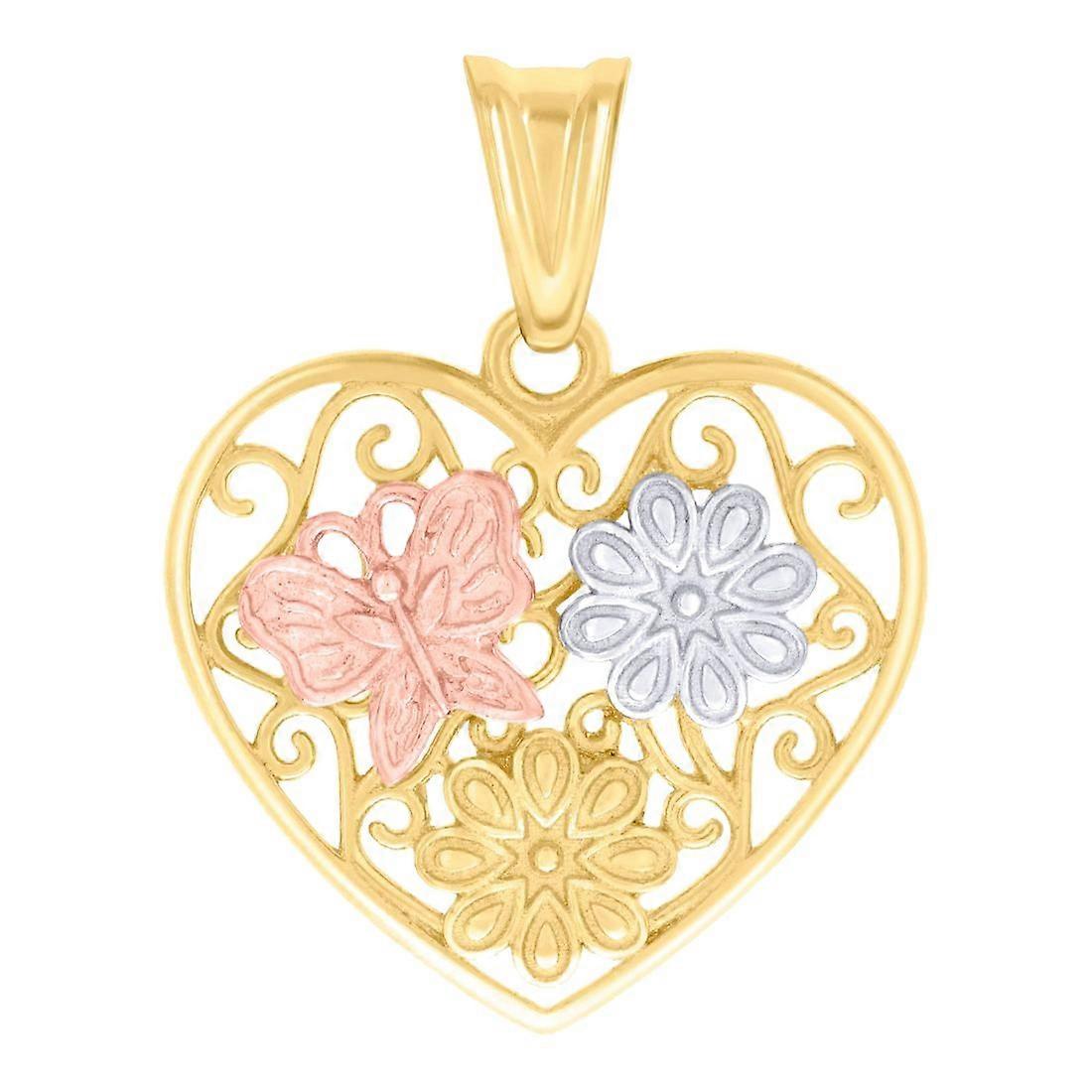 14k Tri color Gold Women Without CZ Floral Love Heart Charm Pendant Necklace 23.1x17.7mm Wide-Pendant for-Women