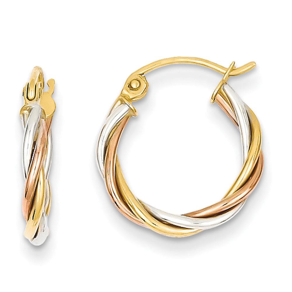 14k Tri Color Hollow Hinged post Gold Polished 2.5mm Twisted Hoop Earrings 8x14mm Wide 2.5mm Thick-Hoop Earring for Wome