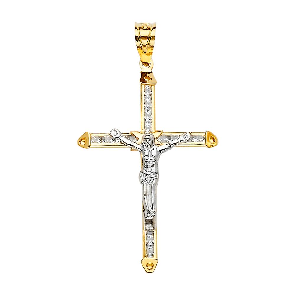 14k White Gold and Yellow Gold Cubic Zirconia Crucifix Religious Faith Cross Pendant Necklace 27x51mm-Pendant for Women