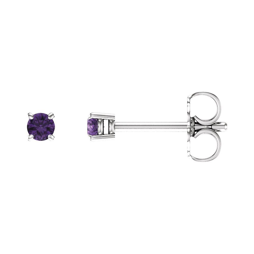 14k White Gold Amethyst 2.5mm Friction Polished 4 prong Light Basket Earrings Stud Earring for Women