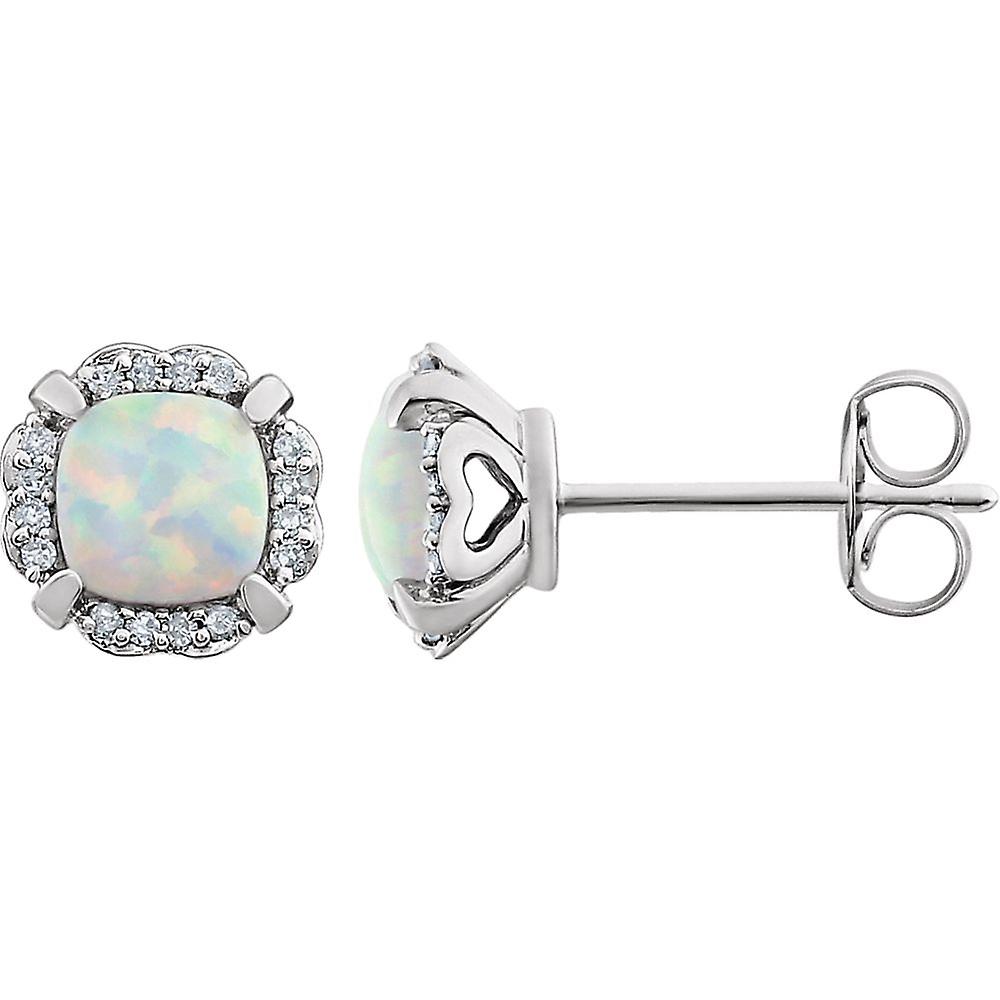 14k White Gold Opal Simulated Opal and 0.1 Dwt Diamond Earrings Stud Earring for Women