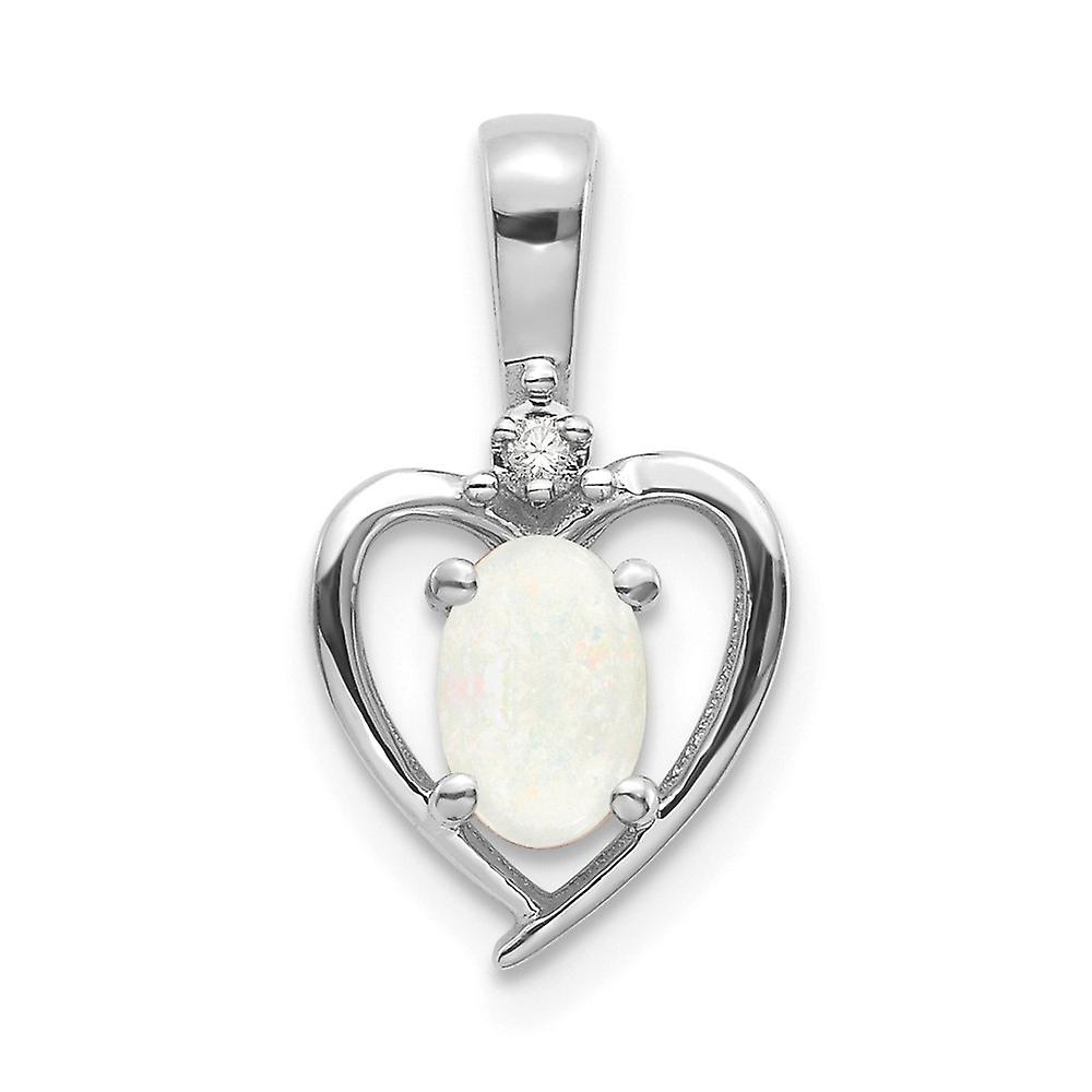 14k White Gold Oval Polished Prong set Simulated Opal Diamond Pendant Necklace 17x10mm Wide-Pendant for Women
