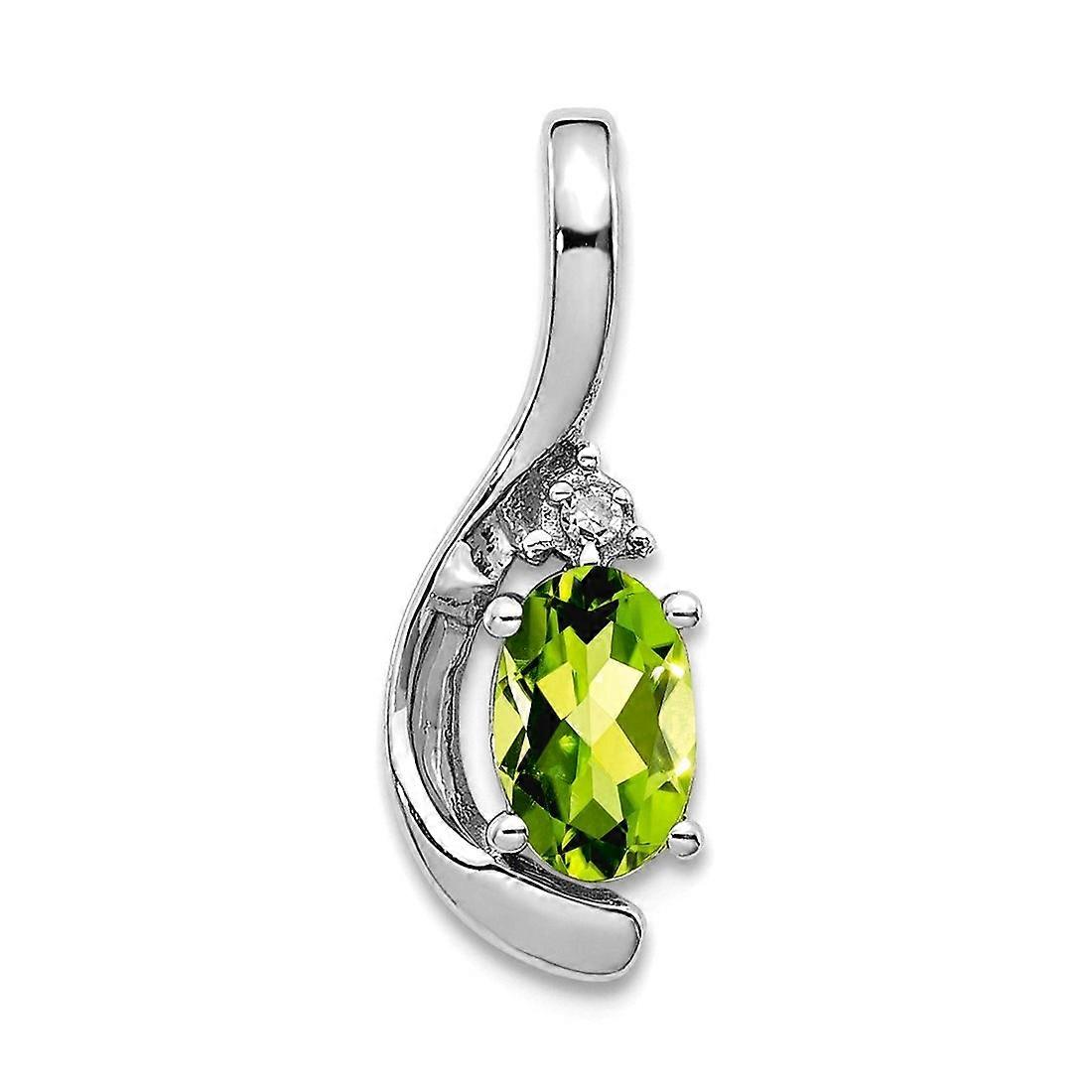 14k White Gold Oval Polished Prong set Peridot Diamond Pendant Necklace 17x6mm Wide-Pendant for Women