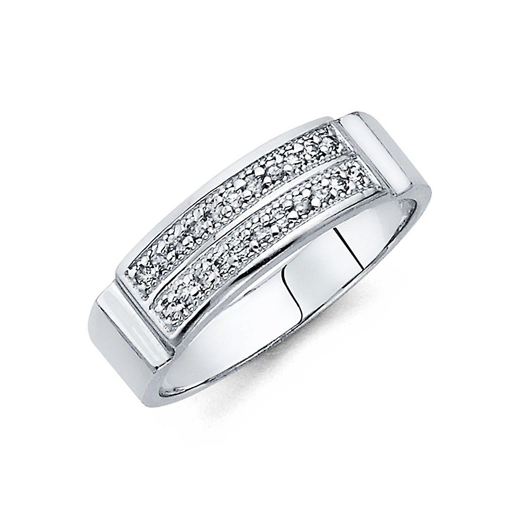 14k White Gold Cubic Zirconia Wedding Band For Men Ring Size 10-Wedding-Band - 2.9 Grams