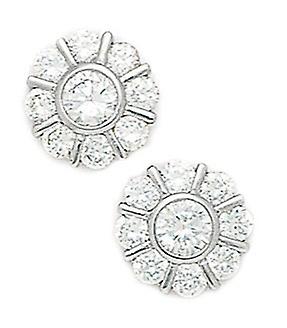 14k White Gold Cubic Zirconia Big Flower Fancy Post Earrings 11x11mm Stud Earring for Women