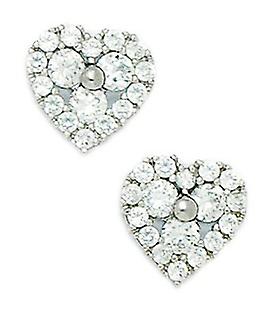 14k White Gold Cubic Zirconia Big Love Heart Fancy Post Earrings 11x11mm Stud Earring for Women