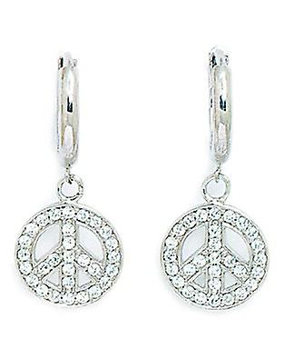 14k White Gold Cubic Zirconia Peace Sign Drop Hinged Earrings 25x10mm Stud Earring for Women
