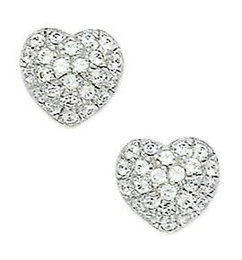 14k White Gold Cubic Zirconia Medium Love Heart Fancy Post Earrings 10x10mm Stud Earring for Women