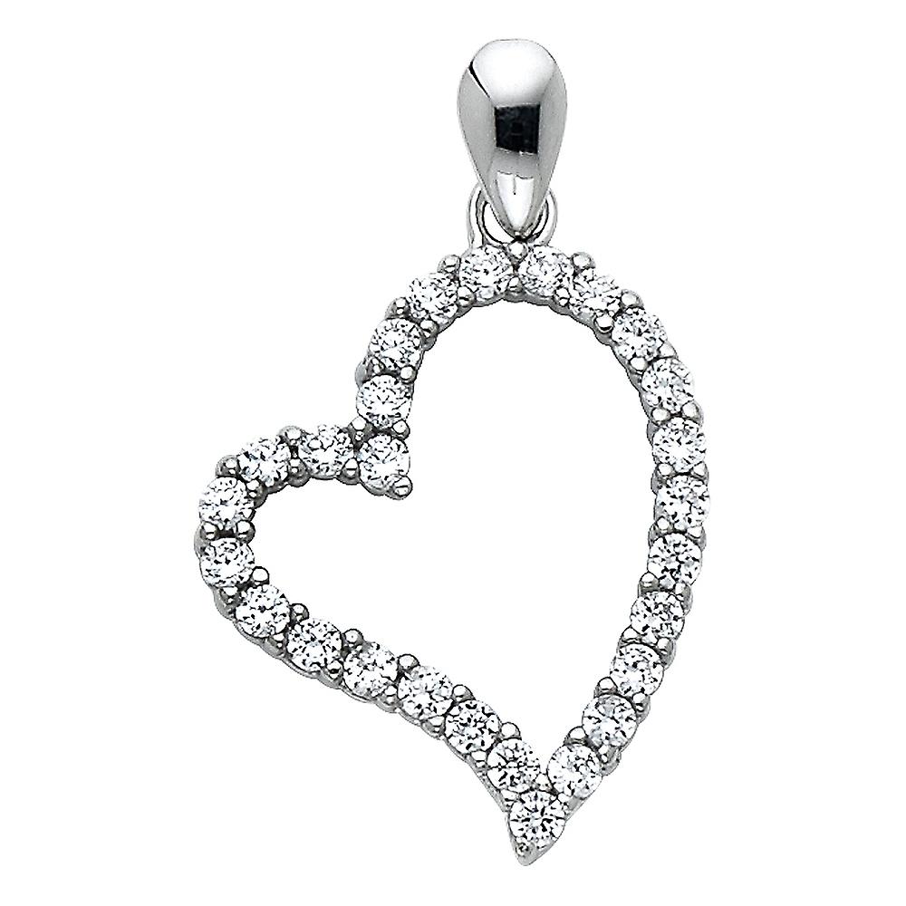 14k White Gold Cubic Zirconia Love Heart Pendant Necklace 15x20mm-Pendant for Women - .9 Grams