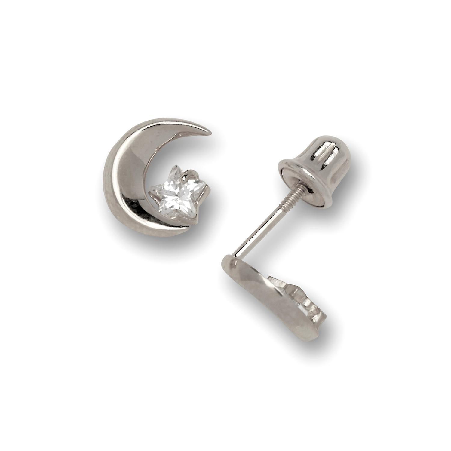 14k White Gold Cubic Zirconia Crescent Celestial Moon With a Star Screw Back Earrings 7x6mm Stud Earring for Women