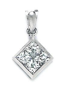 14k White Gold Cubic Zirconia Kite Shaped Pendant Necklace 20x12mm-Pendant for Women