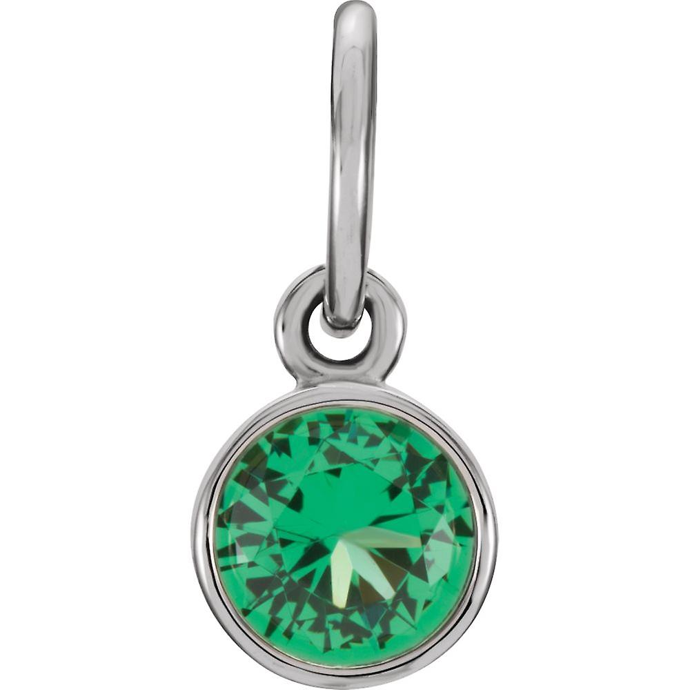 14k White Gold Simulated Emerald Posh Mommy-Simulated Emerald Charm Pendant Necklace for Women