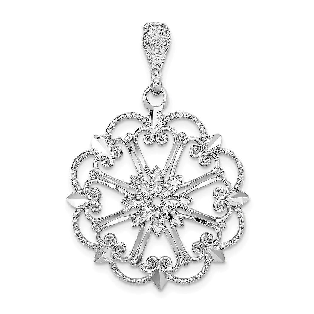 14k White Gold Starbust With Love Heart Pendant Necklace and Sparkle Cut Beaded Scallop Edge 30.3x24.3mm Wide-Pendant fo