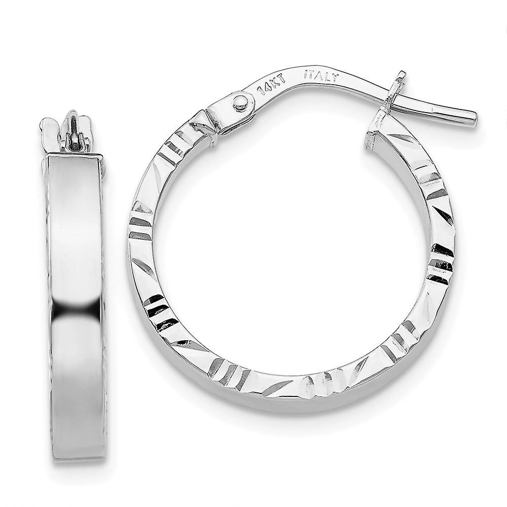 14k White Gold Sparkle Cut Edge Polished Hoop Earrings 20x18.75mm Wide 3mm Thick-Hoop Earring for Women