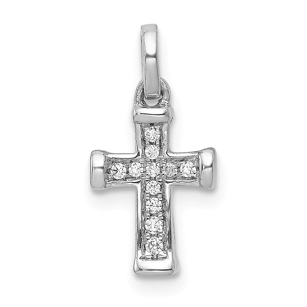 14k White Gold Small Diamond Latin Religious Faith Cross Pendant Necklace 16x7mm Wide-Pendant for Women