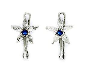 14k White Gold September Blue 1.5mm CZ Flower Leverback Earrings 12x7mm Stud Earring for Women