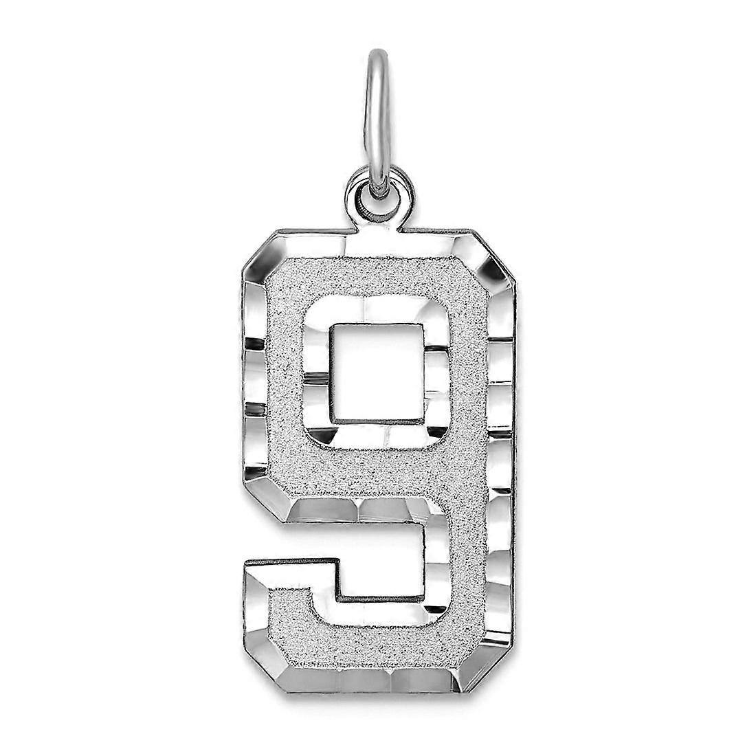 14k White Gold Solid Satin Large Sparkle Cut Sport game Number Charm 25x11.3mm Pendant Necklace for Women