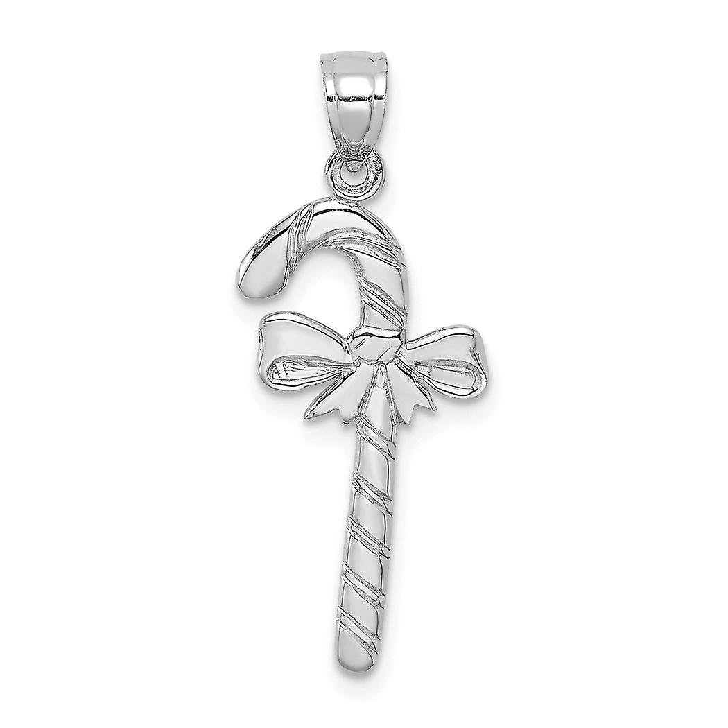 14k White Gold Solid Polished Candy Cane Pendant Necklace 26.3x10.9mm Wide-Pendant for Women