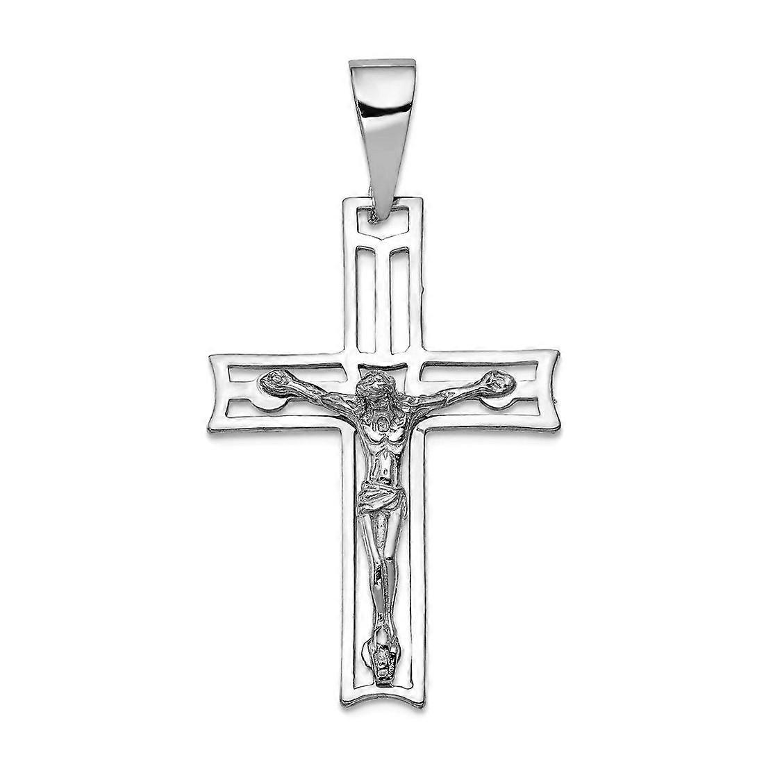 14k White Gold Solid Polished Crucifix Pendant Necklace 23.3x44.1mm-Pendant for Women - 2.3 Grams