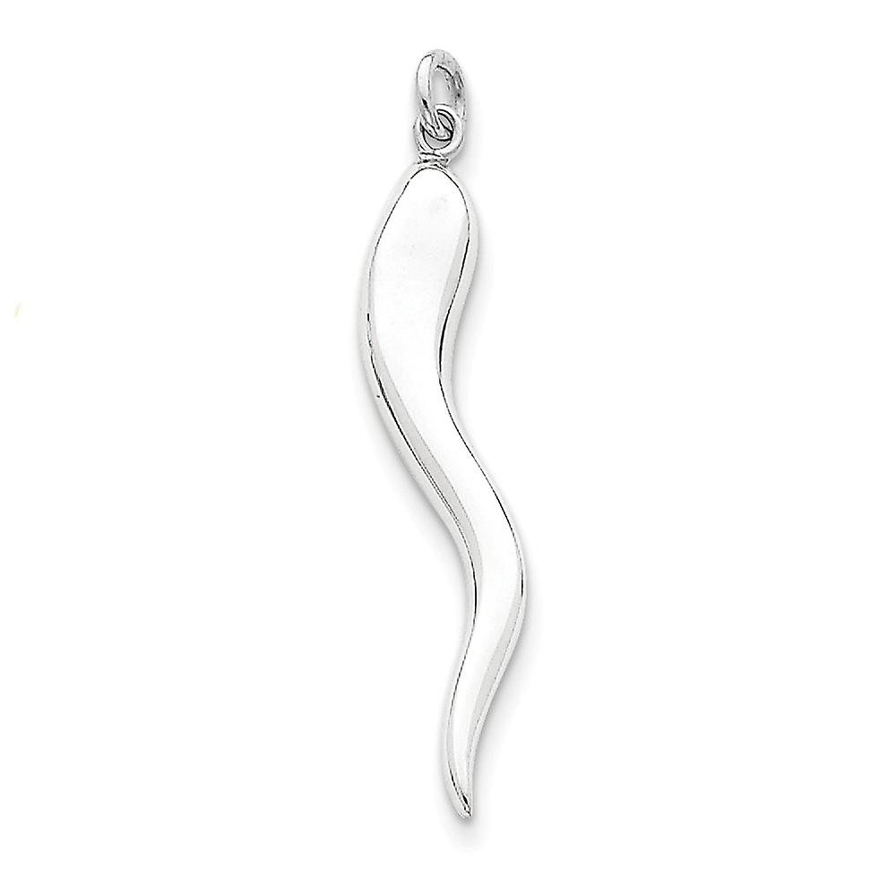 14k White Gold Solid Polished 3D Large Italian Horn Charm - Measures 36x5mm - 4.4 Grams in 14k White Gold - Product Attributes: - 3-D - - Charm/Element Width: 7 mm - Width of Item: 5 mm - Charm/Element Length: 34 mm - Length of Item: 40 mm - Finish: Polished - Feature: 3D - Engravable: Not Recommended - - This Item Does Not Ship With a Chain