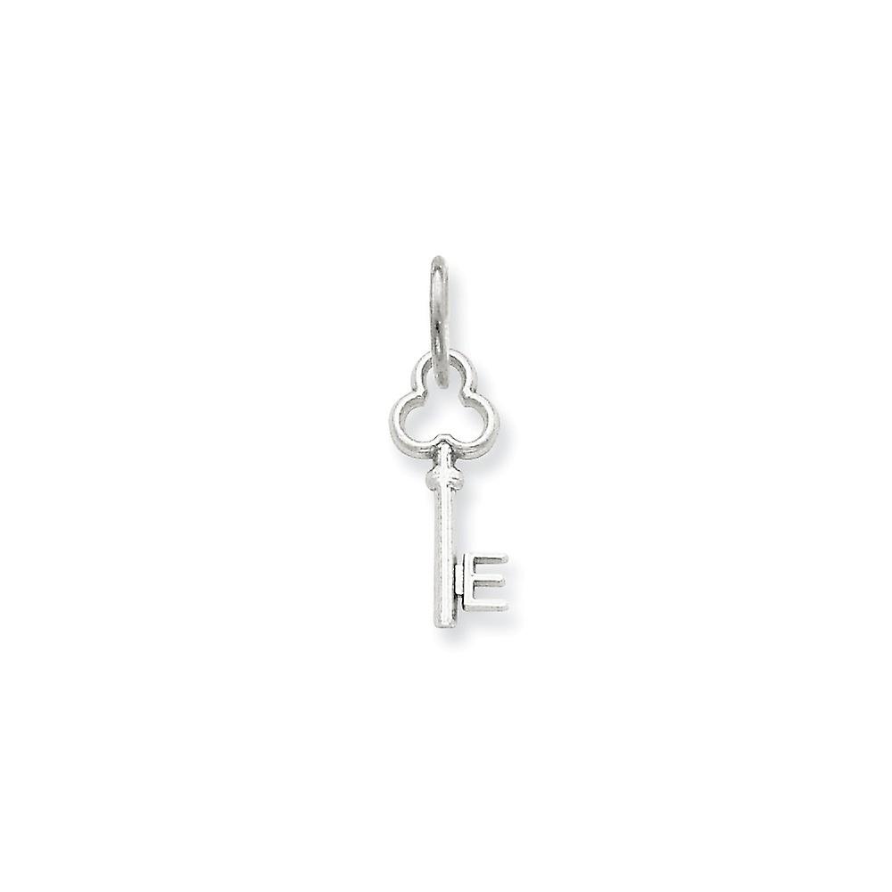 14k White Gold Solid Polished E Key Charm 15.53x6.88mm Wide Pendant Necklace for Women - .3 Grams