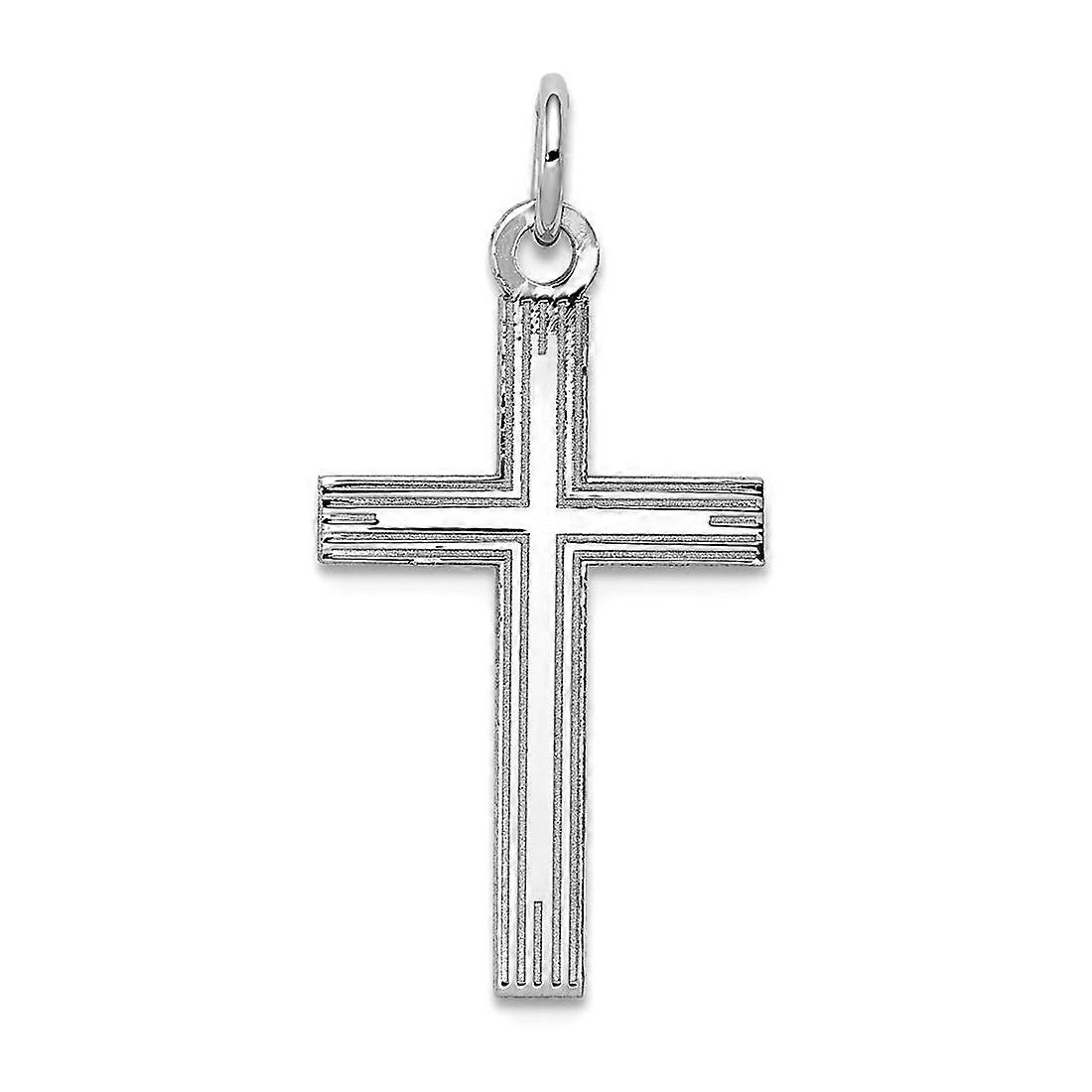 14k White Gold Solid Laser cut Polished back Not engraveable-Laser Designed Religious Faith Cross Pendant Necklace 13x25