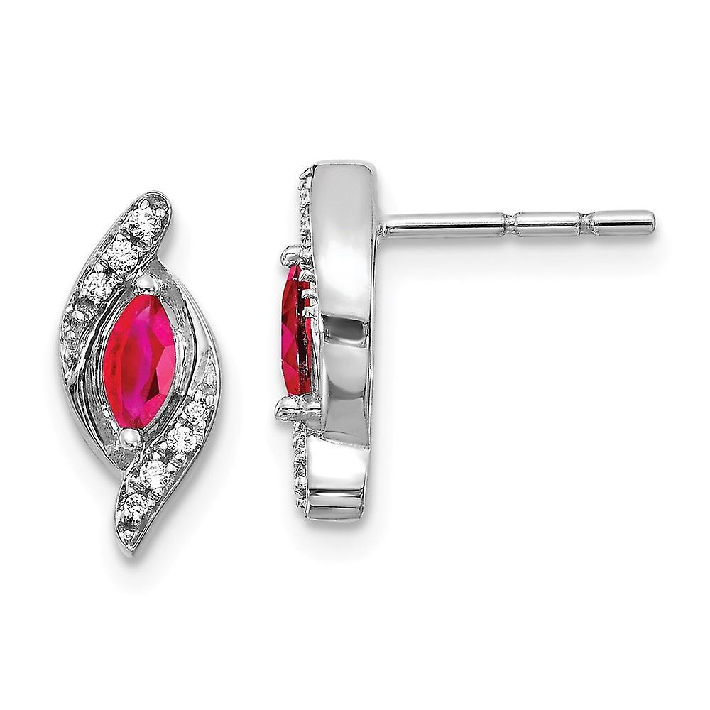 14k White Gold Diamond and Ruby Earrings 12x5mm Wide Stud Earring for Women - .07 dwt .36 cwt