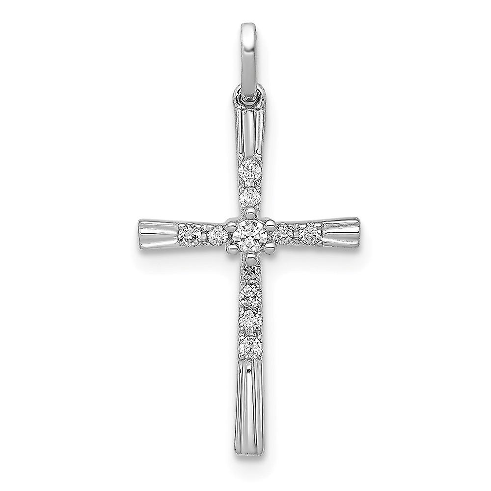 14k White Gold Diamond Cross Pendant - Measures 19.5x11.5mm Wide - .10 Carat Diamond Weight in 14k White Gold - - Charm/Element Width: 11.5 mm - Width of Item: 11.5 mm - Charm/Element Length: 19 mm - Length of Item: 19.5 mm - Bail Length: 4.5 mm - Bail Width: 1 mm - Finish: Polished - - This Item Does Not Ship With a Chain - - [ Care and Handling: diamond ] - Clean with warm soapy water and a soft brush or cloth. -