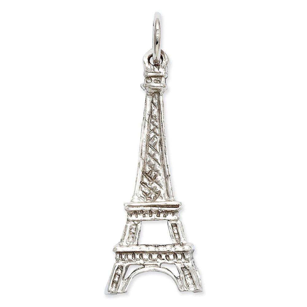 14k White Gold Textured Solid Polished Eiffel Tower Charm 26x11mm Pendant Necklace for Women