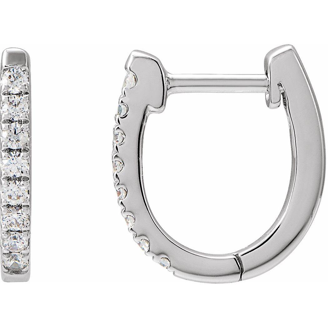 14k White Gold Natural Diamond 12.95mm 0.17 Carat I1 H+ Hinged Polished 1/6 Hoop Earrings-Hoop Earring for Women