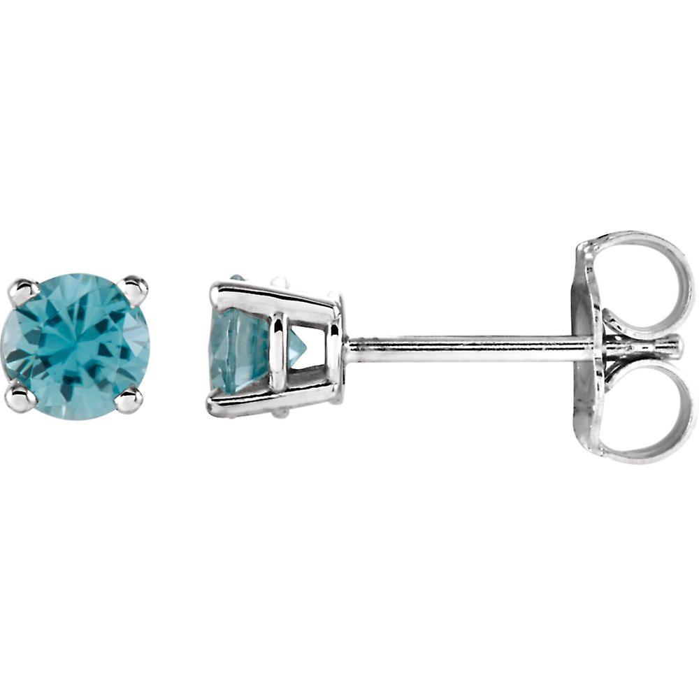 14k White Gold Blue Zircon 4mm Friction Polished Blue-Zircon Earrings Stud Earring for Women