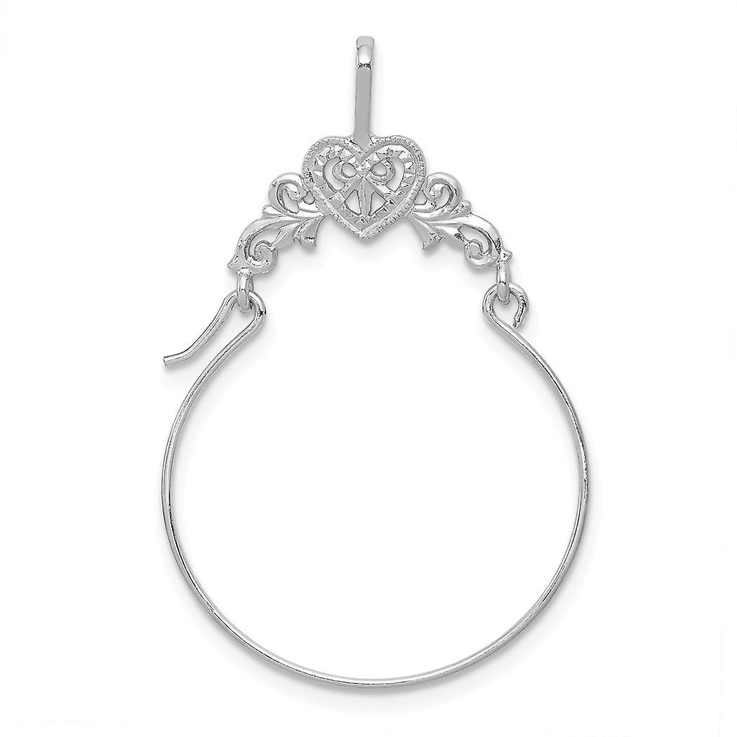 14k White Gold Bow In Love Heart Charm Holder 39x15.7mm Wide Pendant Necklace for Women - .8 Grams