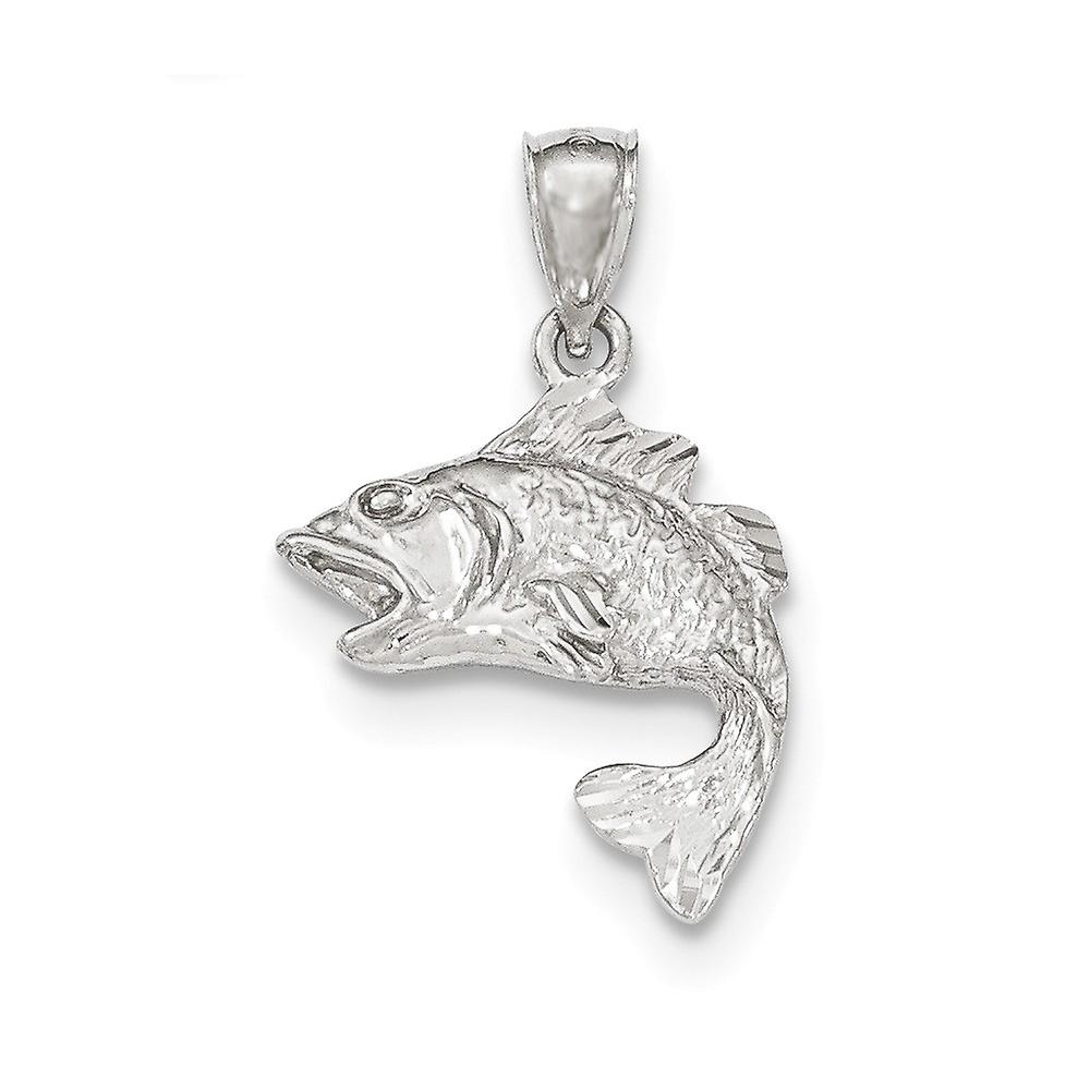 14k White Gold Polished and Textured Bass Pendant Necklace-Pendant for Women
